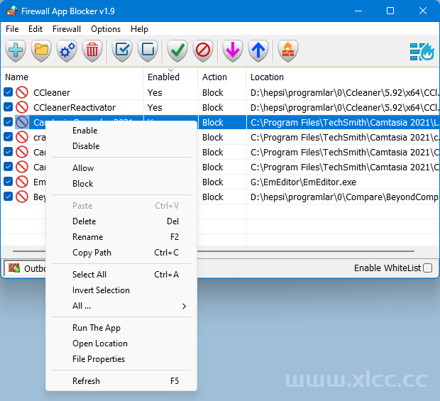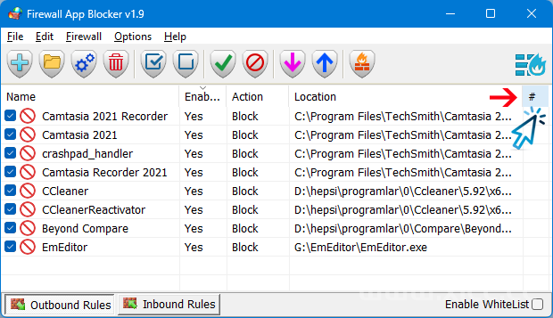 注意:Firewall App Blocker 不会更改 Windows Firewall 默认规则。如果您使用第三方安全软件或第三方防火墙(例如 Avast),他们可以禁用您的 Windows 防火墙。如果您不希望 Ms Edge 和类似的 Microsoft 程序以白名单模式访问 Internet,您可以在高级 Windows 防火墙设置中手动禁用它们的规则 防火墙应用程序阻止程序 只有在启用 Windows 防火墙时才能正常运行。